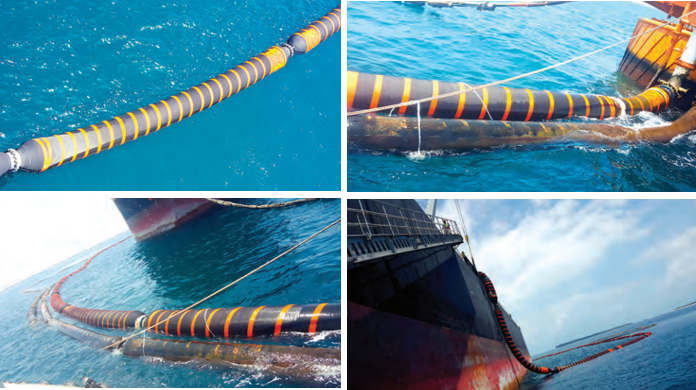 Tank rail hose are used to connect the hose string to the tankermanifold.This hose hasminimal floatation in the centre where it bendsover the tanker rail, with extra flotation ateach end providing hosebuoyancy.The tanker connection end has a larger buoyancy unitthan theoutboard end to help support valve and coupling equipment.
